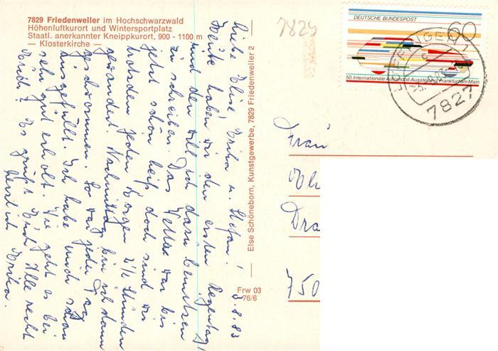 73931729 alte Postkarte Friedenweiler Klosterkirche Inneres postalisch gelaufen Erhaltung siehe scans [WerneD78] KatCode: 11110008315039