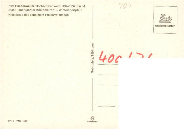 73932141 Friedenweiler Klostersee mit Freischwimmbad Kurort im Schwarzwald postalisch nicht gelaufen Erhaltung siehe scans [FriedD77] KatCode: 11110008315039
