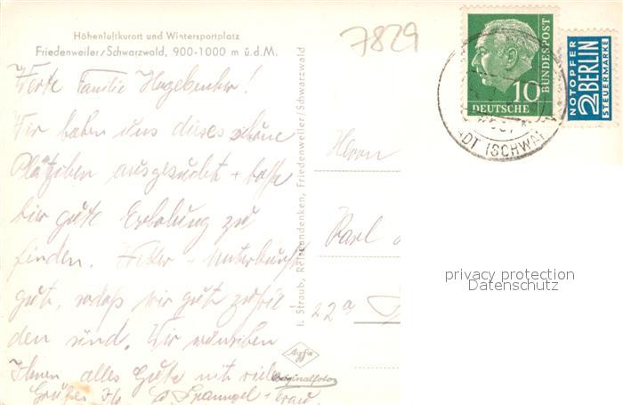 72978040 alte Postkarte Friedenweiler Luftkurort im Schwarzwald Fliegeraufnahme postalisch gelaufen Erhaltung siehe scans [FriedD77] KatCode: 11110008315039