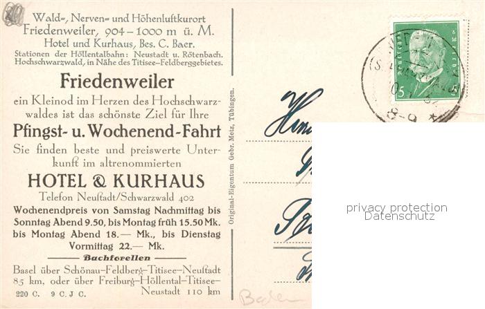 43505367 alte Postkarte Friedenweiler Panorama postalisch gelaufen Erhaltung siehe scans [KathaD81] KatCode: 11110008315039