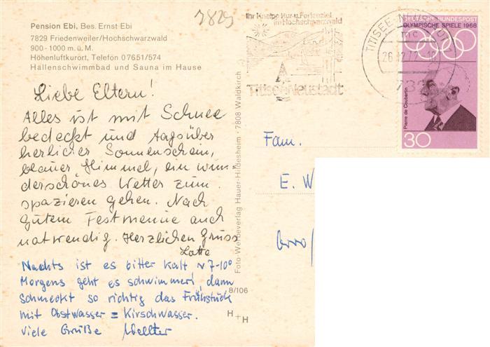 73931225 alte Postkarte Friedenweiler Pension Ebi postalisch gelaufen Erhaltung siehe scans [WerneD78] KatCode: 11110008315039