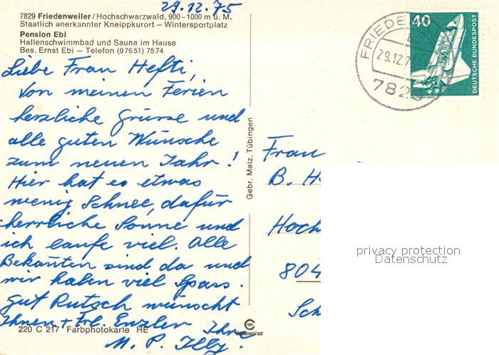 73110502 alte Postkarte Friedenweiler Pension Ebi postalisch gelaufen Erhaltung siehe scans [NatalD47] KatCode: 11110008315039