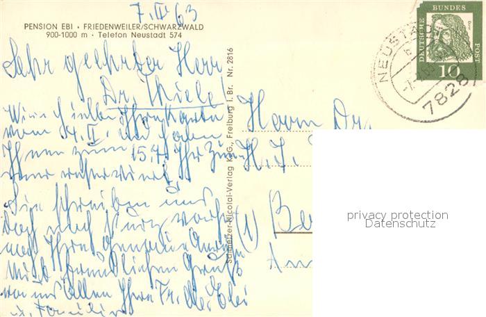 73648513 alte Postkarte Friedenweiler Pension Ebi Winterlandschaft im Schwarzwald postalisch gelaufen Erhaltung siehe scans [FriedD77] KatCode: 11110008315039