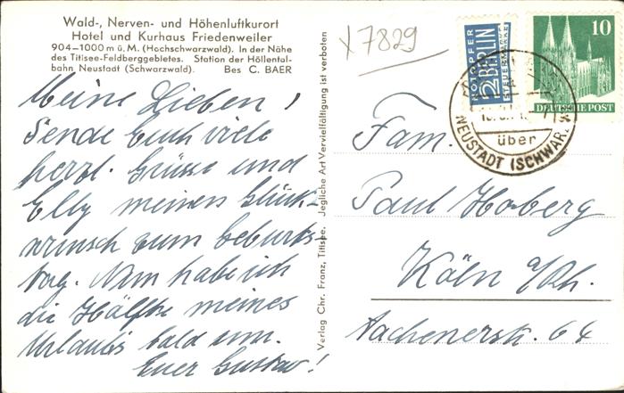 41396764 Friedenweiler Schloss Kinderheilstätte Kurhaus Hotel KatCode 11110008315039