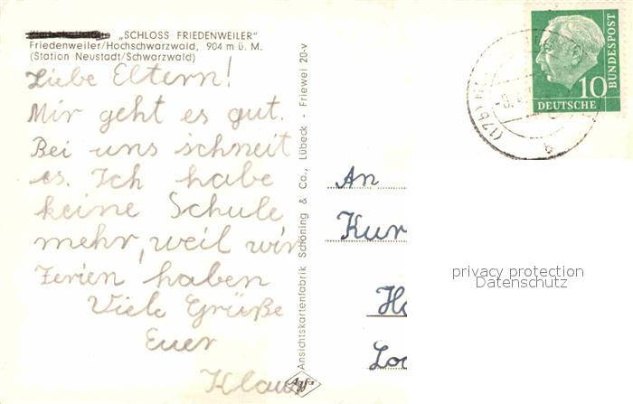72858301 alte Postkarte Friedenweiler Schloss postalisch gelaufen Erhaltung siehe scans [AndreD76] KatCode: 11110008315039