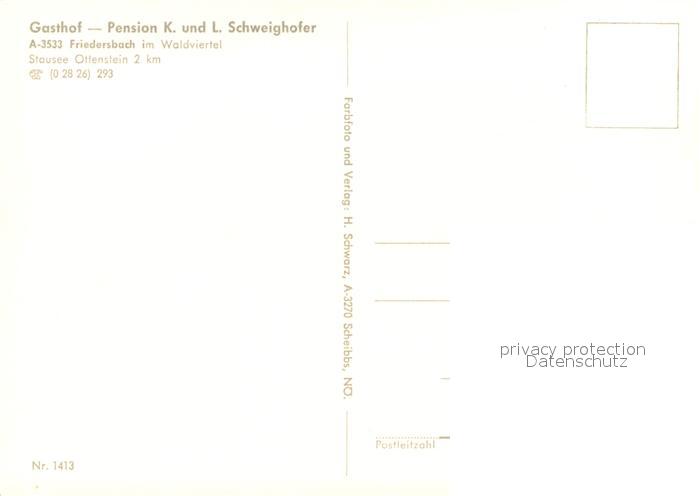 73703525 Friedersbach Gasthof Pension Schweighofer postalisch nicht gelaufen Erhaltung siehe scans [FriedD77] KatCode: 11390