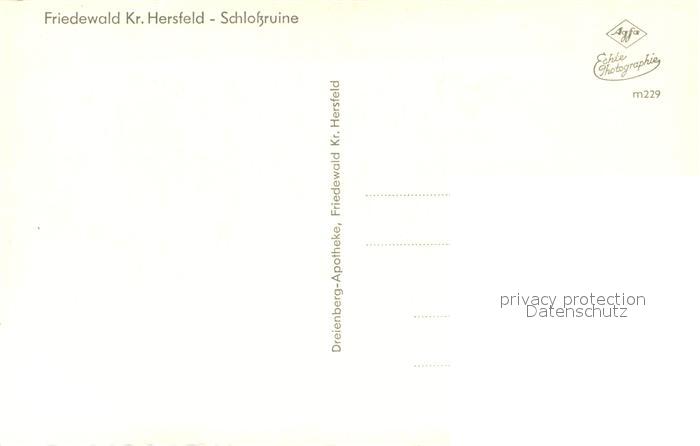 73227598 Friedewald Hessen Schlossruine postalisch nicht gelaufen Erhaltung siehe scans [NatalD47] KatCode: 11110006632006