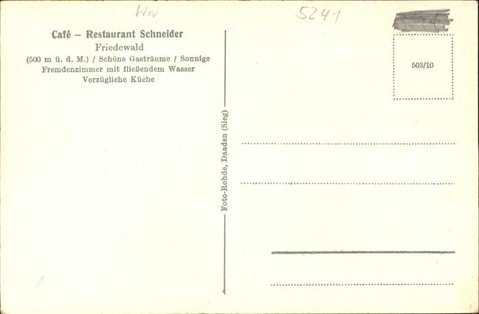 41312708 Friedewald Westerwald Cafe Restaurant Schneider postalisch nicht gelaufen gute Erhaltung Alte Ansichtskarte Postkarte hz_L Katcode 11110007132036