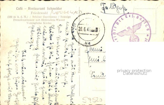31721946 alte Postkarte Friedewald Westerwald Cafe Restaurant Schneider postalisch gelaufen Feldpost Erhaltung siehe scans KatCode: 11110007132036
