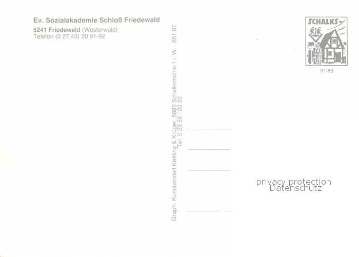 72844001 Friedewald Westerwald Evangelische Sozialakademie Schloss postalisch nicht gelaufen Erhaltung siehe scans [AndreD76] KatCode: 11110007132036