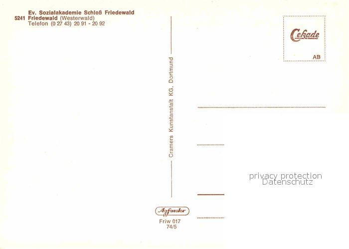 72844004 Friedewald Westerwald Evangelische Sozialakademie Schloss postalisch nicht gelaufen Erhaltung siehe scans [AndreD76] KatCode: 11110007132036