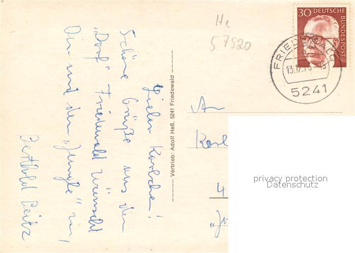 73712419 alte Postkarte Friedewald Westerwald Schloss Park Panorama postalisch gelaufen Erhaltung siehe scans [WerneD78] KatCode: 11110007132036