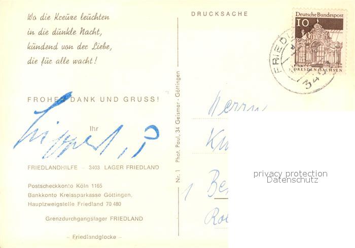 43351327 alte Postkarte Friedland Goettingen Friedlandglocke laeute in die Welt hinaus postalisch gelaufen Erhaltung siehe scans [KathaD81] KatCode: 11110003152009