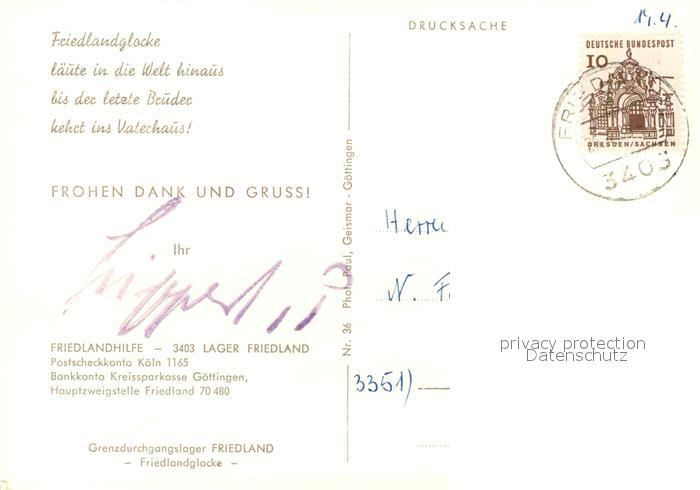 73029077 alte Postkarte Friedland Goettingen Friedlandglocke postalisch gelaufen Erhaltung siehe scans [KathaD81] KatCode: 11110003152009