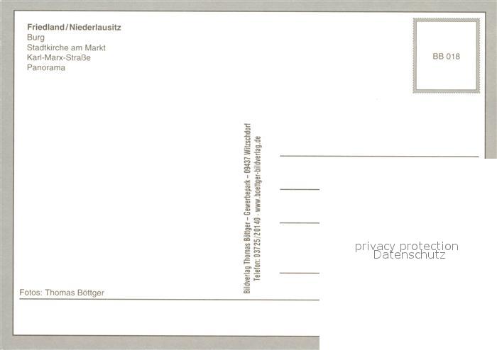 73268178 Friedland Mark Burg Stadtkirche Markt Karl Marx Strasse Panorama postalisch nicht gelaufen Erhaltung siehe scans [FriedD77] KatCode: 11110012067137