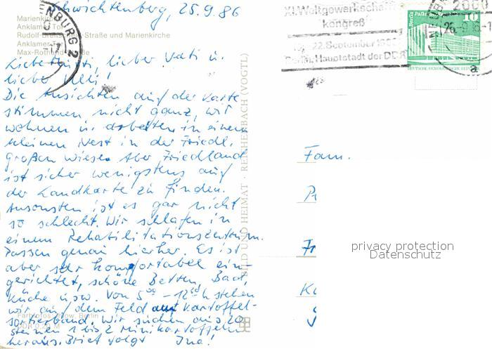 72652019 alte Postkarte Friedland Mecklenburg Marienkirche Anklamer Tor Rudolf Breitscheid Strasse Max Rothand Strasse postalisch gelaufen Erhaltung siehe scans [FriedD77] KatCode: 11110012067137