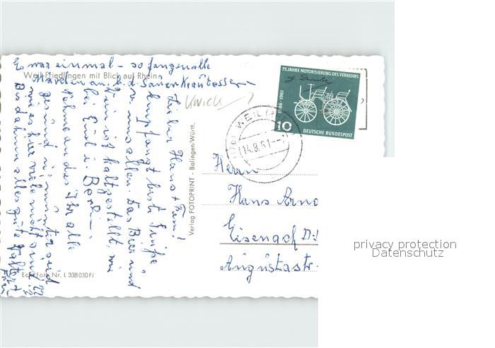 32363485 alte Postkarte Friedlingen Panorama mit Rheinblick postalisch gelaufen Erhaltung siehe scans KatCode: 11110008336091