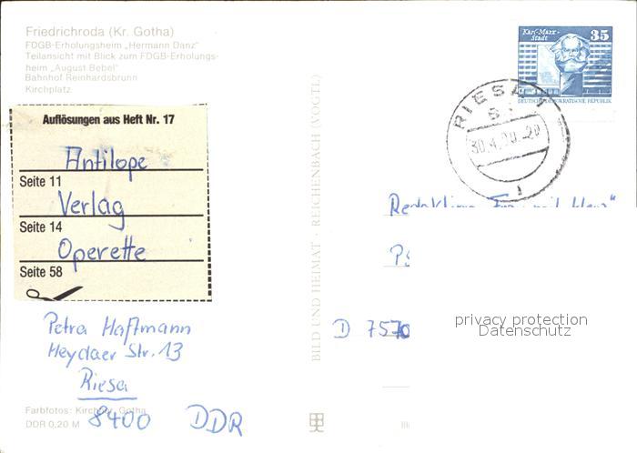72379233 alte Postkarte Friedrichroda Bahnhof Reinhardsbrunn Kirchplatz postalisch gelaufen Erhaltung siehe scans KatCode: 11110016067019