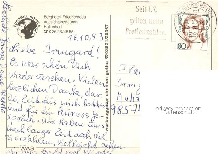 73645338 alte Postkarte Friedrichroda Berghotel Restaurant Hallenbad postalisch gelaufen Erhaltung siehe scans [FriedD77] KatCode: 11110016067019