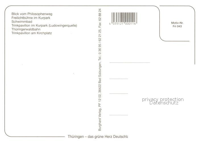 73266830 Friedrichroda Blick vom Philosophenweg Freilichtbuehne Kurpark Schwimmbad Trinkpavillon Thueringerwaldbahn Kirchplatz postalisch nicht gelaufen Erhaltung siehe scans [FriedD77] KatCode: 11110016067019