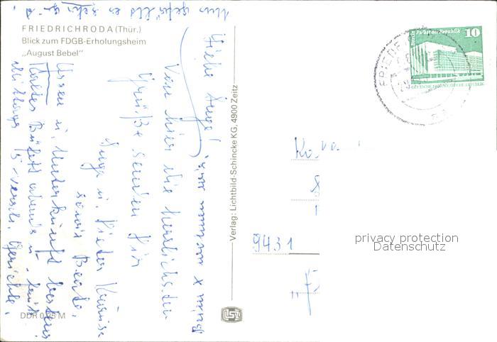 72381947 alte Postkarte Friedrichroda Blick zum Erholungsheim August Bebel postalisch gelaufen Erhaltung siehe scans KatCode: 11110016067019
