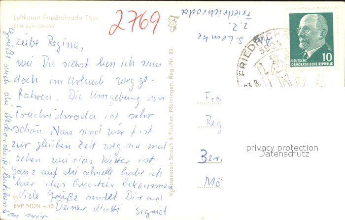 72466243 alte Postkarte Friedrichroda Blick zum Grund postalisch gelaufen Erhaltung siehe scans KatCode: 11110016067019