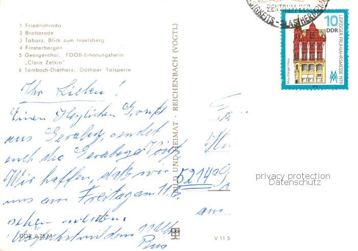 73842056 alte Postkarte Friedrichroda Brotterode Tabarz Inselsberg Finsterbergen Georgenthal FDGB Erholungsheim Gothaer Talsperre postalisch gelaufen Erhaltung siehe scans [FriedD77] KatCode: 11110016067019
