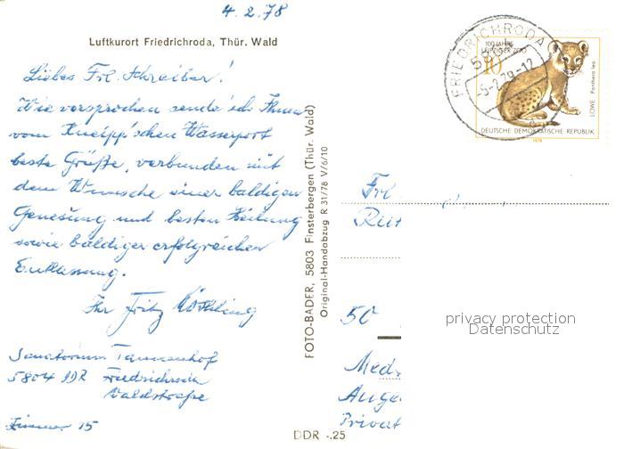 73741119 alte Postkarte Friedrichroda Cafe u. Konditorei Waldschloesschen im Schnee postalisch gelaufen Erhaltung siehe scans [LiesaD40] KatCode: 11110016067019