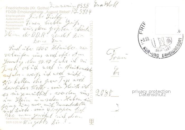 73227613 alte Postkarte Friedrichroda Erholungsheim August Bebel postalisch gelaufen Erhaltung siehe scans [NatalD47] KatCode: 11110016067019
