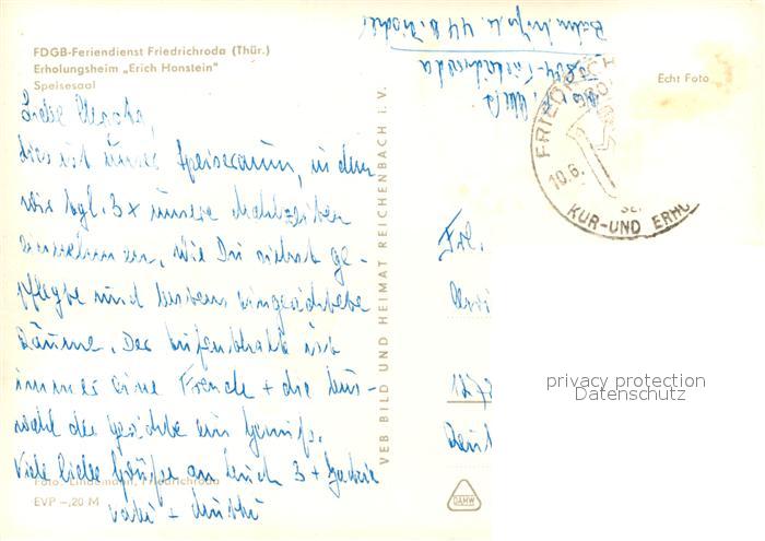 73124458 alte Postkarte Friedrichroda Erholungsheim Erich Hanstein Speisesaal postalisch gelaufen Erhaltung siehe scans [KathaD81] KatCode: 11110016067019