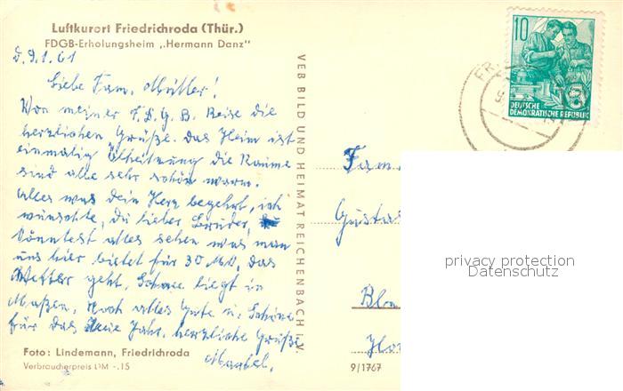 43495177 alte Postkarte Friedrichroda FDGB Erholungheim Hermann Danz Winter postalisch gelaufen Erhaltung siehe scans [KathaD81] KatCode: 11110016067019