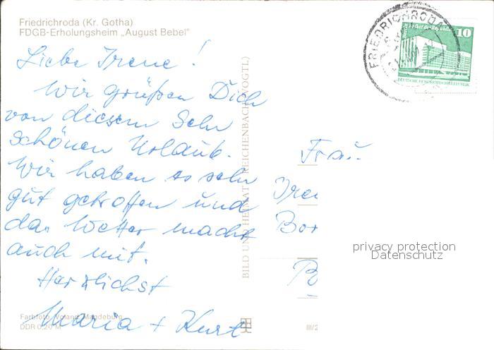 71935114 alte Postkarte Friedrichroda FDGB Erholungshei August Bebel postalisch gelaufen Erhaltung siehe scans KatCode: 11110016067019