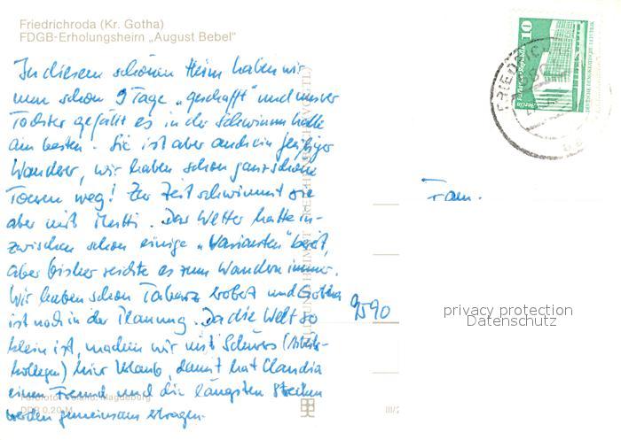 73076841 alte Postkarte Friedrichroda FDGB Erholungsheim August Bebel postalisch gelaufen Erhaltung siehe scans [KathaD81] KatCode: 11110016067019