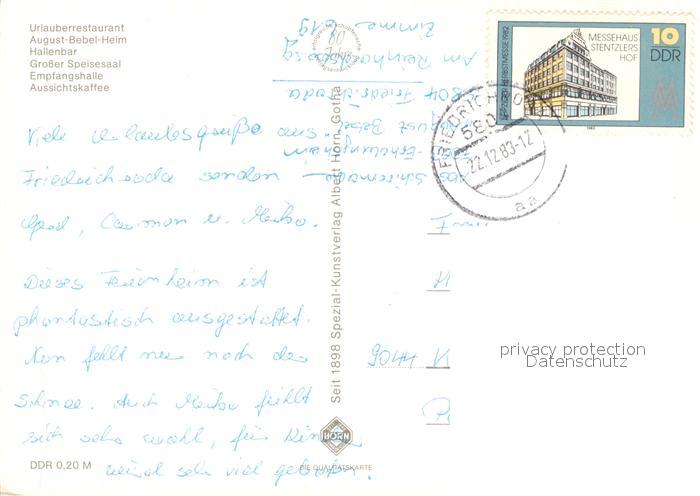 73076029 alte Postkarte Friedrichroda FDGB Erholungsheim August Bebel postalisch gelaufen Erhaltung siehe scans [KathaD81] KatCode: 11110016067019
