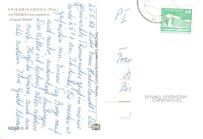 73032603 alte Postkarte Friedrichroda FDGB Erholungsheim August Bebel postalisch gelaufen Erhaltung siehe scans [KathaD81] KatCode: 11110016067019