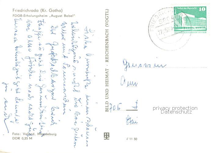 73760053 alte Postkarte Friedrichroda FDGB Erholungsheim August Bebel postalisch gelaufen Erhaltung siehe scans [WerneD78] KatCode: 11110016067019