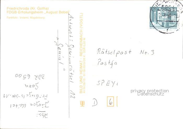72461670 alte Postkarte Friedrichroda FDGB Erholungsheim August Bebel postalisch gelaufen Erhaltung siehe scans KatCode: 11110016067019