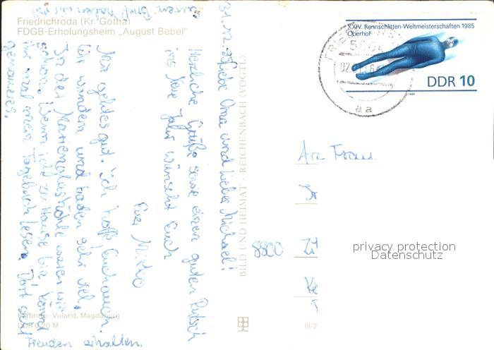 72337094 alte Postkarte Friedrichroda FDGB Erholungsheim August Bebel postalisch gelaufen Erhaltung siehe scans KatCode: 11110016067019