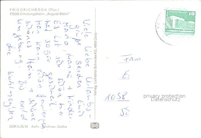 72182360 alte Postkarte Friedrichroda FDGB Erholungsheim August Bebel postalisch gelaufen Erhaltung siehe scans KatCode: 11110016067019