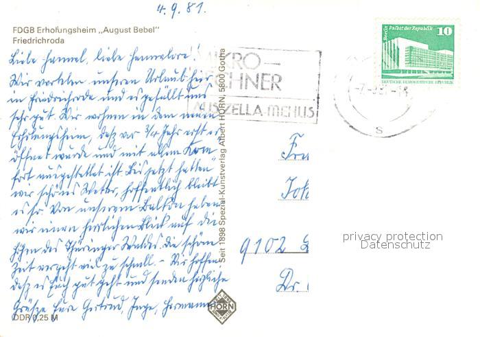 73613876 alte Postkarte Friedrichroda FDGB Erholungsheim August Bebel postalisch gelaufen Erhaltung siehe scans [FriedD77] KatCode: 11110016067019