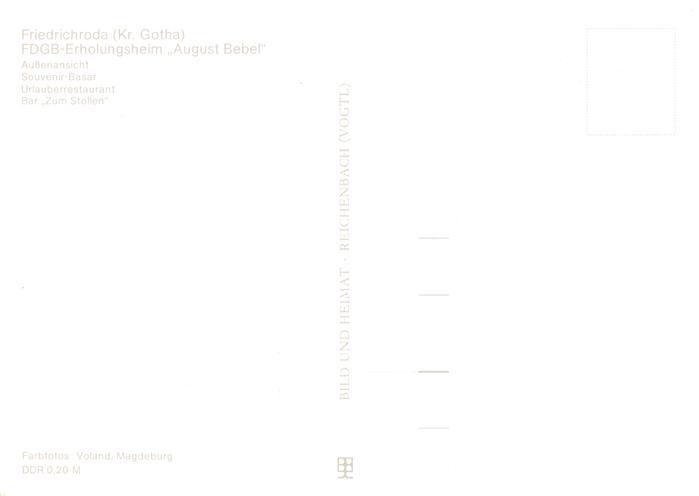 73886608 Friedrichroda FDGB Erholungsheim August Bebel Ansicht Souvenir Basar Urlauberrestaurant Bar Zum Stollen postalisch nicht gelaufen Erhaltung siehe scans [WerneD78] KatCode: 11110016067019
