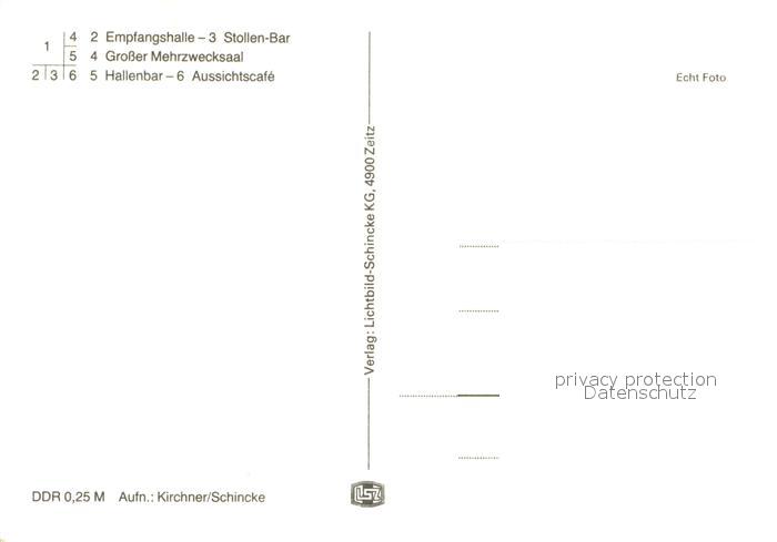 73669374 Friedrichroda FDGB Erholungsheim August Bebel Empfangshalle Stollenbar Mehrzwecksaal Hallenbar AussichtsCafe postalisch nicht gelaufen Erhaltung siehe scans [FriedD77] KatCode: 11110016067019