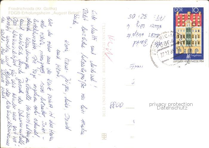 72337097 alte Postkarte Friedrichroda FDGB Erholungsheim August Bebel Souvenir Basar Restaurant Bar postalisch gelaufen Erhaltung siehe scans KatCode: 11110016067019