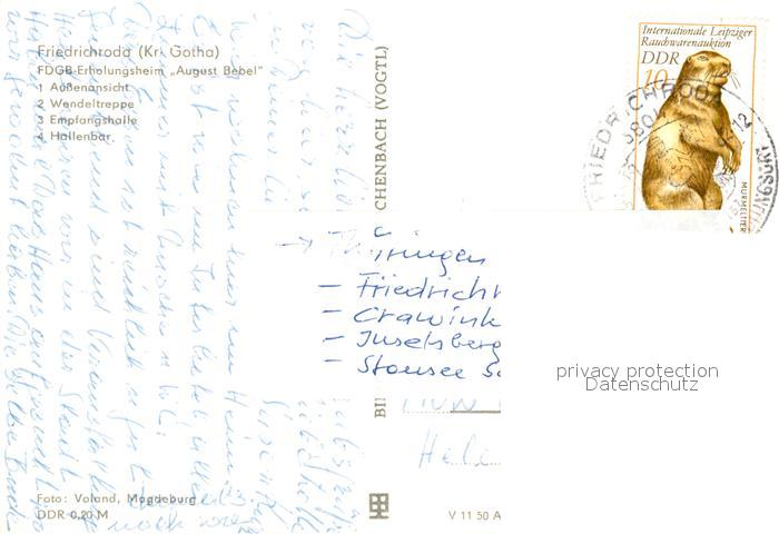 73108004 alte Postkarte Friedrichroda FDGB Erholungsheim August Bebel Wendeltreppe Empfangshalle Hallenbar postalisch gelaufen Erhaltung siehe scans [WerneD78] KatCode: 11110016067019