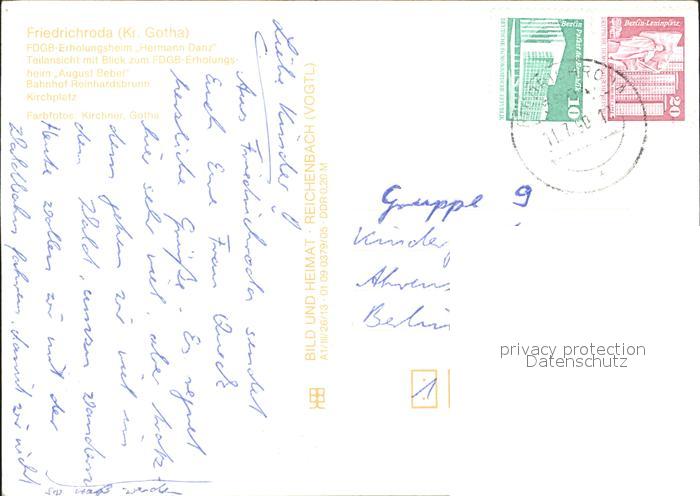 72276657 alte Postkarte Friedrichroda FDGB- Erholungsheim Hermann Danz Kirchplatz postalisch gelaufen Erhaltung siehe scans KatCode: 11110016067019