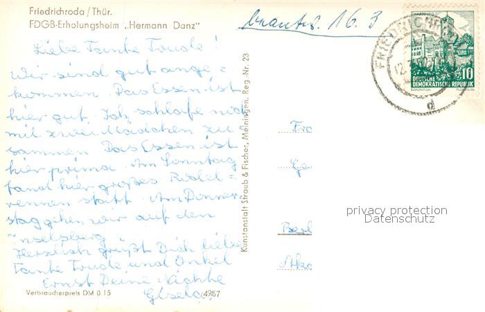 43495178 alte Postkarte Friedrichroda FDGB Erholungsheim Hermann Danz Winter postalisch gelaufen Erhaltung siehe scans [KathaD81] KatCode: 11110016067019