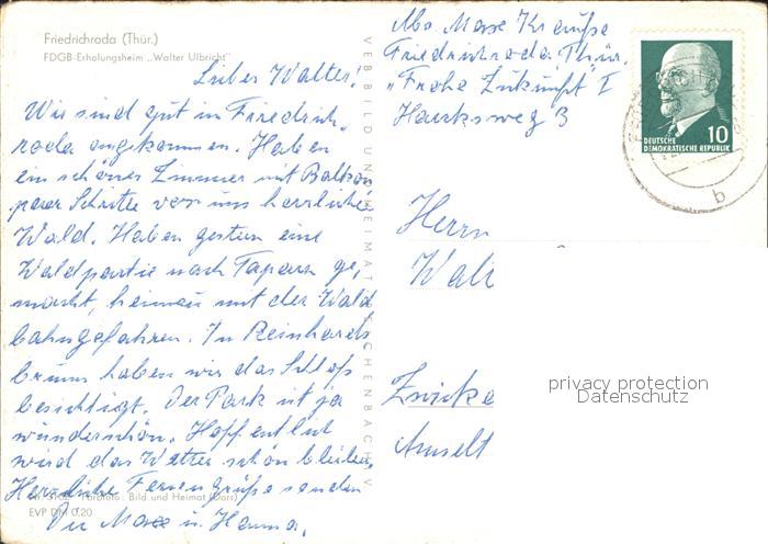 72133176 alte Postkarte Friedrichroda FDGB Erholungsheim Walter Ulbrich postalisch gelaufen Erhaltung siehe scans KatCode: 11110016067019