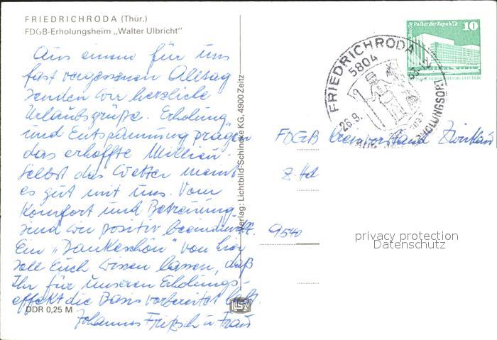 72117555 alte Postkarte Friedrichroda FDGB Erholungsheim Walter Ulbricht postalisch gelaufen Erhaltung siehe scans KatCode: 11110016067019