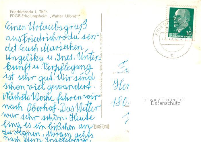 72987331 alte Postkarte Friedrichroda FDGB Erholungsheim Walter Ulbricht postalisch gelaufen Erhaltung siehe scans [WerneD78] KatCode: 11110016067019