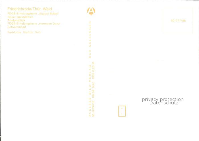 72413965 Friedrichroda FDGB Erholungsheime Aug Bebel und Hermann Danz Neuer Gondelteich Adolphsblick Schwimmbad postalisch nicht gelaufen Erhaltung siehe scans KatCode: 11110016067019